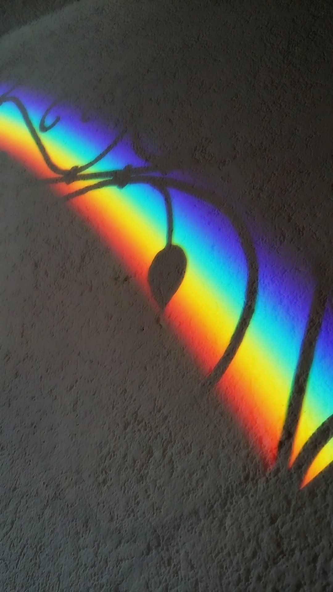 ... hatte ich bereits vor Jahren, als meine Kinder noch klein waren. Damals hatte wir ein ganz normales Prisma, ein sogenanntes Sonnenprisma. Das hat einen schönen Spektralstreifen in's Zimmer geworfen.