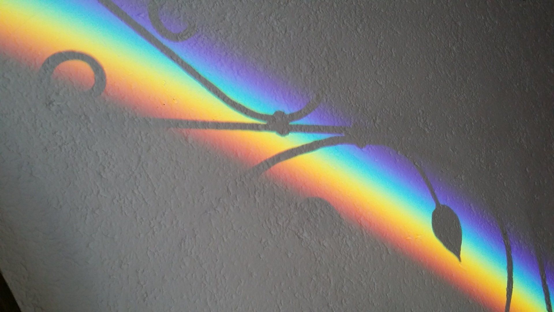 ... hatte ich bereits vor Jahren, als meine Kinder noch klein waren. Damals hatte wir ein ganz normales Prisma, ein sogenanntes Sonnenprisma. Das hat einen schönen Spektralstreifen in's Zimmer geworfen.